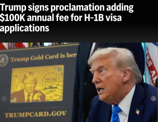 當地時間9月19日,特朗普政府宣布對H-1B工作簽證實施嚴格限制,新增高達10萬美元的申請費,并要求雇主為入境申請人承擔這筆費用!
